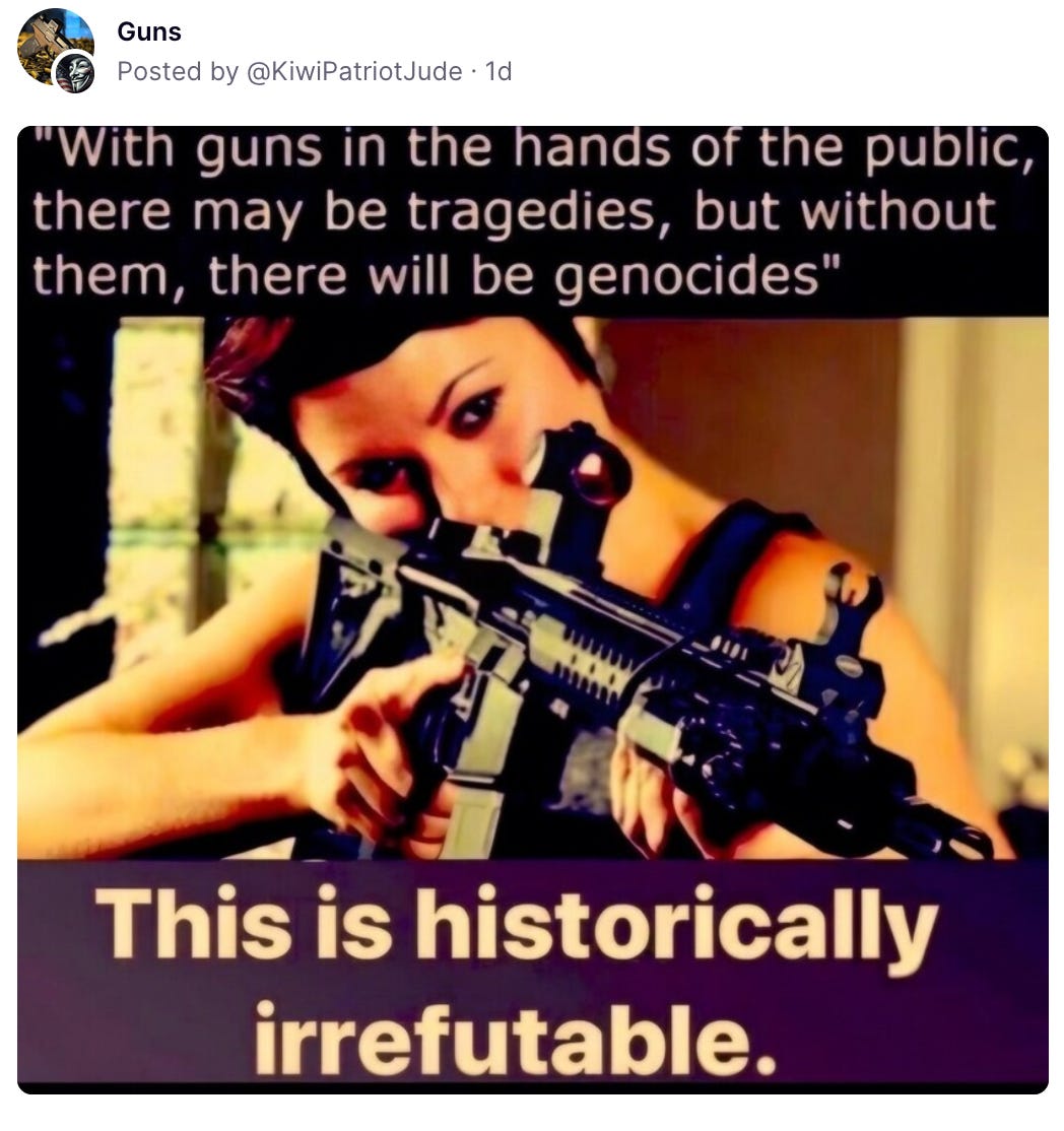 Oh, and they can’t live without your precious fucking guns and have no problem sacrificing (other people’s) children to their sick devotion to implements of death. That no other industrialized country tolerates such butchery is lost on them.