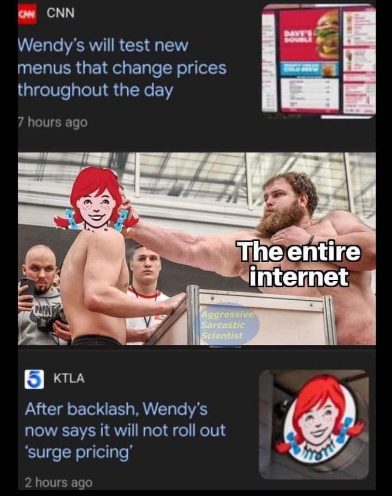 No, these days, I’m fascinated by things like Wendy’s announcing that beginning in 2025, the hamburger chain will begin testing Uber-like surge pricing.
