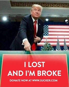 Despite the evidence against him, Trump pére still screams into the void. (Please hold…your scream is very important to us. One of our disinterested representatives will be with you presently. Or perhaps not.)