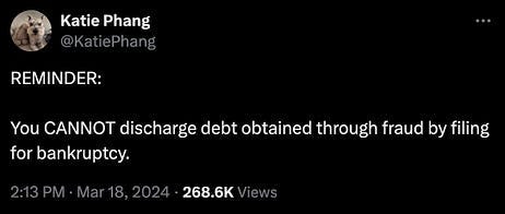 “Engoron wants me to put up the ridiculous fine (I DID NOTHING WRONG!) before I get a chance to Appeal his crazed ruling - A first!” he wrote.